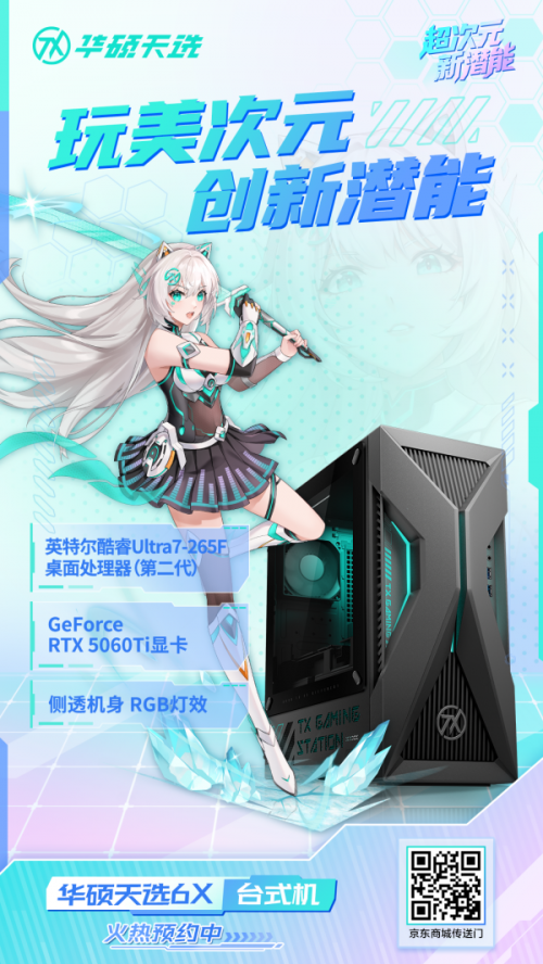 在电竞产业蓬勃发展的当下,玩家对游戏装备的需求早已超越“能玩”的层面,转向对极致性能与个性化体验的双重追求。全新华硕天选6X台式机以全新姿态打破想象边界。作为华硕天选系列旗下最新的高性能游戏台式机,它搭载全新升级的英特尔酷睿Ultra7-265F与NVIDIA GeForce RTX 5060Ti 16G独显,辅以突破性的机身美学设计,为玩家打造出兼具极致性能与视觉冲击力的电竞装备。