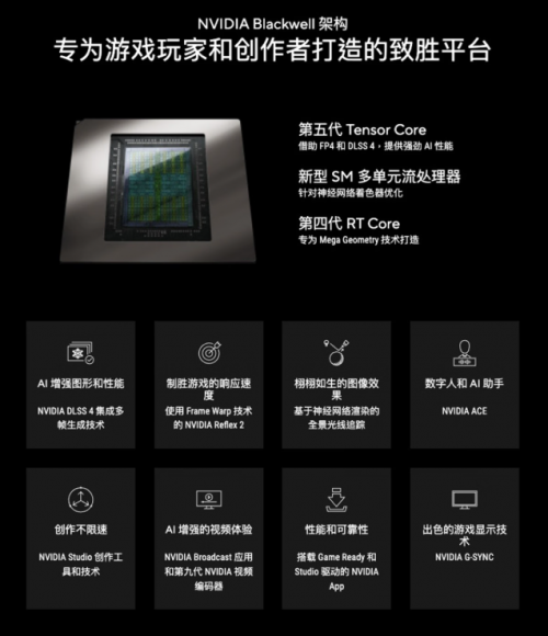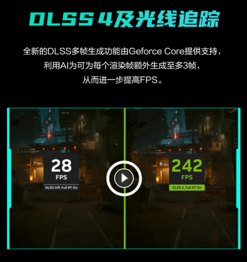 支持DLSS 4.0多帧生成与NVIDIA Reflex2功能,能为玩家在游戏的高画质场景中大幅提升帧率并有效降低延迟,将沉浸感拉满。