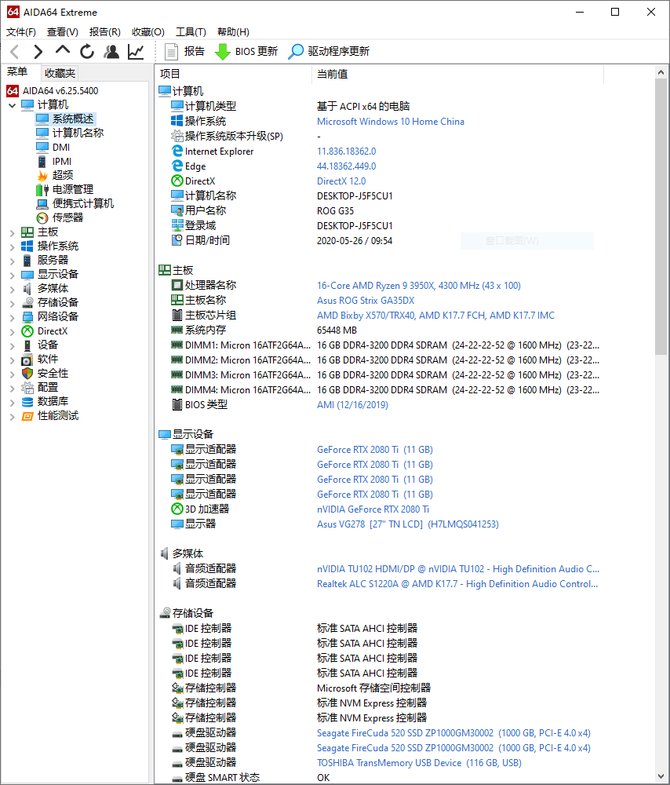 毫无疑问,在性能上,ROG光魔G35台式机的硬件表现非常优秀,尤其是搭载了AMD锐龙9 3950X处理器以及水冷系统,让CPU动力表现源源不断、稳定发挥,各项成绩也完全达到预期。同时,包括RTX2080Ti显卡,64GB DDR4 3200MHz规格的内存,以及2TB固态硬盘,都无可挑剔。它不仅满足了游戏玩家的性能需求,也为视频创作者、设计师们提供了更卓越的硬核表现。