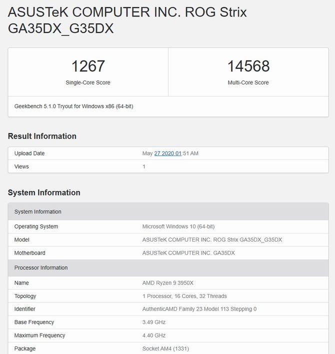 Geekbench 5是通过许多不同的测试或工作负载来测量CPU性能的,并能相当完整地显示整个测试平台的硬件信息。Geekbench 5.1.0版测试的最终结果单核成绩1267,多核成绩14568,超频后多线程得分可达15003,约有3%的提升,多线程的成绩相当不错。