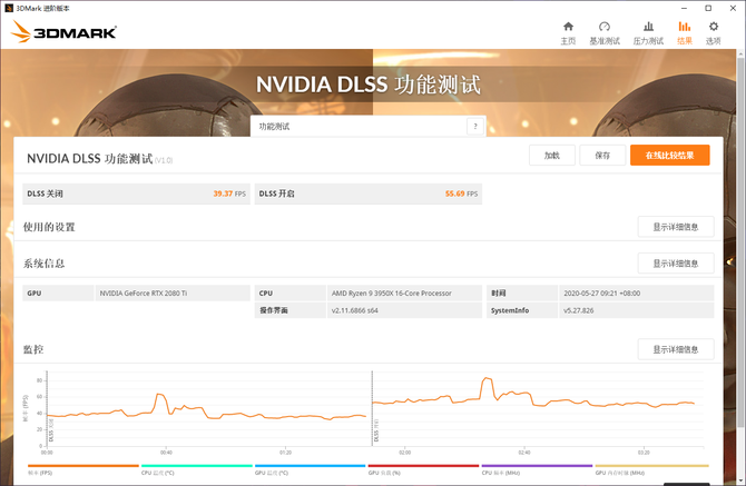 接下来我们使用较新版3DMark进行测试,测试项目包括TimeSpy、Time Spy Extreme、Fire Strike、Fire Strike Extreme、Fire Strike Uitra,结果均统计综合得分;此外还包括Port Royal测试、DLSS测试,该测试只有支持AI光追技术的显卡才能进行。