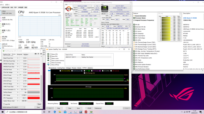 使用AIDA64进行FPU单烤48分钟,CPU温度能够稳定在89°C,核心电压1.10V,功耗192W,频率3.91GHz也同样非常稳定。