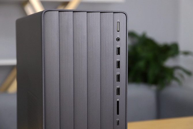如果要用一句话来总结惠普 ENVY TE01台式机,那就是秀外而慧中。前面板的百叶窗设计,不仅动感十足还起到通风的作用,与机箱左侧、后部的通风口形成呼应,为机箱内提供高效循环散热。