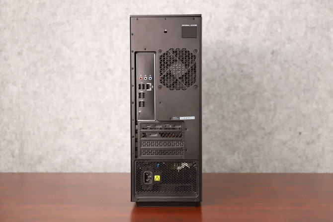 机箱后部包括主板集成的3个3.5mm音频接口,6个USB Type-A(2×USB 2.0;4×USB 3.1)、一个USB Type-C和一个RJ45千兆网口。RTX 2080 Ti显卡后部则包括三个DP 1.4a,一个HDMI 2.0b和一个Type-C,接口数量极其丰富,能够连接目前各种主流外设,提供更为强悍的操作体验。