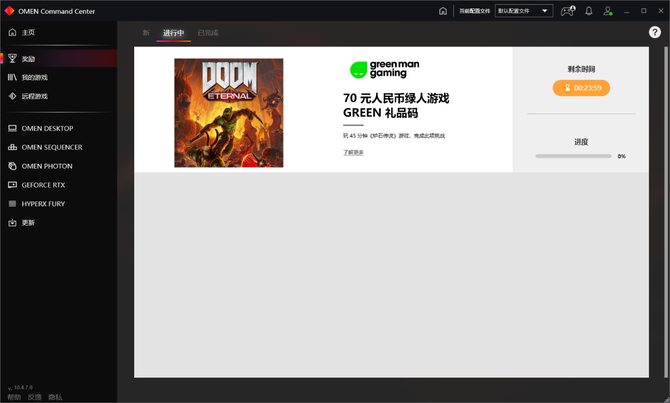 除了在惠普游戏控制中心里管理全部暗影精灵产品以及查看主机硬件性能、超频等,在新版里还上线了一个奖励的页面,玩家在活动期间使用惠普游戏控制中心上线游戏,可以凭上线时间赢取新的游戏,大家不妨来挑战一下。