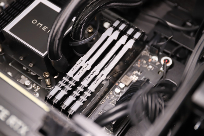 暗影精灵6游戏台式机旗舰版在用料上可谓是豪华,4根金士顿骇客神条Fury雷电系列 DDR4内存,单条容量16GB,并搭载散热马甲,一共64GB,支持XMP一键超频。