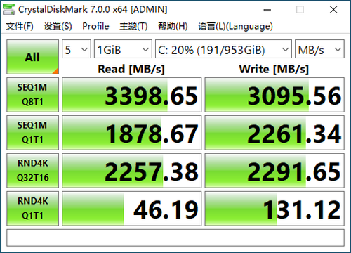 读写性能方面,顺序读取速度达到3398.65MB/s,写入速度达到3095.56MB/s,4K随机读取2257.38MB/s,写入速度2291.65MB/s,这样的速度,即便是5、60GB的游戏,蓝光影片等特大型文件的拷贝,也不过数十秒时间。这当然也更加适合摄影师、视频剪辑等大型素材的存储和转移。