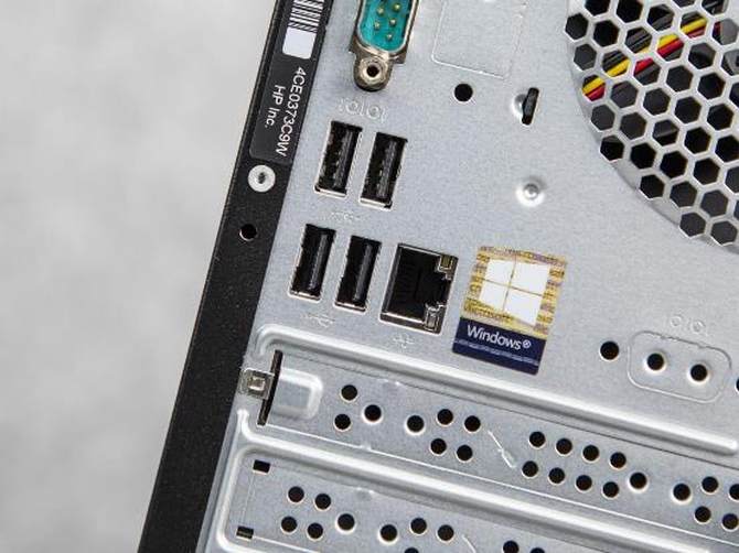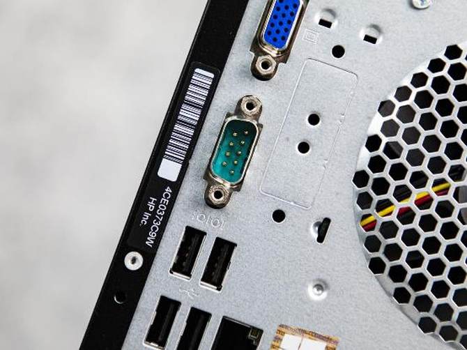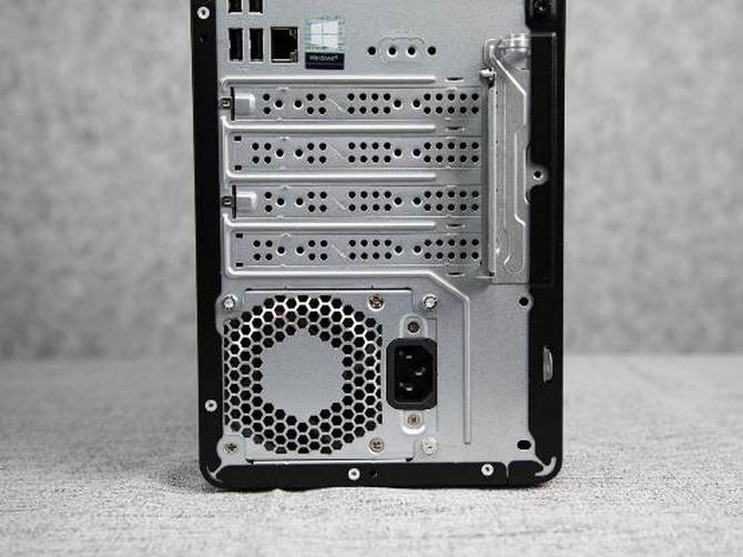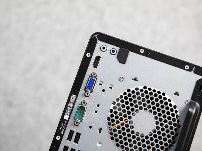 机身后部,同样提供了丰富的接口,上部:有耳机和麦克风接口、HDMI、VGA双视频输出接口、4个USB接口和一个标准网线接口。另外整机还配备了串口,支持直连打印机,更加方便商务办公人士的日常使用。