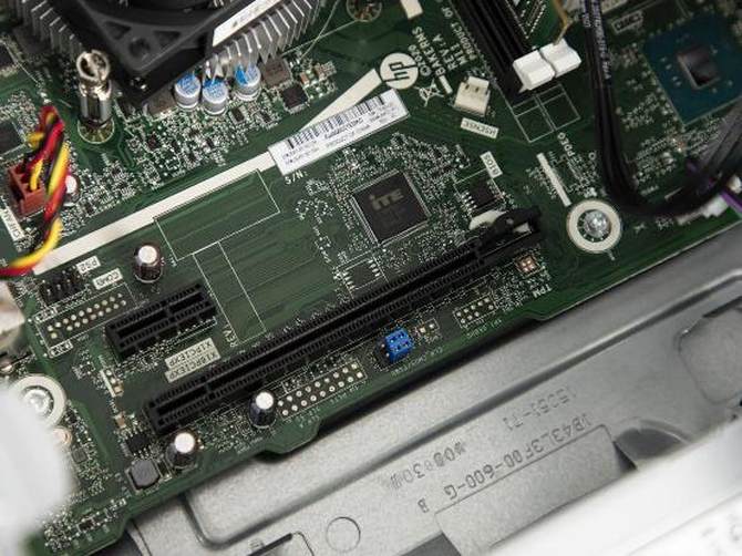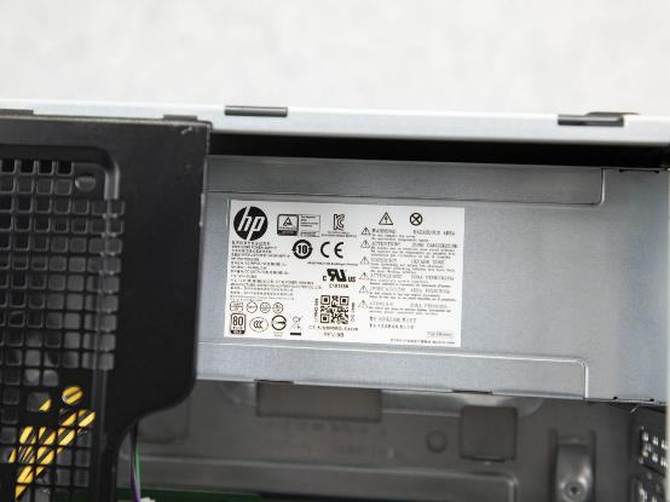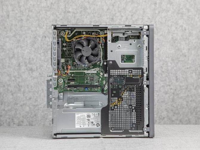 拆开侧面板我们可以看到,主板是惠普定制的主板,芯片组支持较新的Intel酷睿十代处理器,整体的走线还是比较规整的。