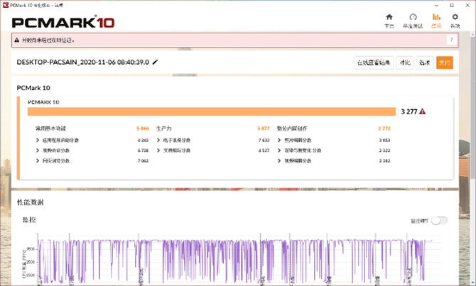 在PCMARK10测试成绩方面,最终整机的得分为3277,则代表其能够轻松应对各种类型的办公应用、视频会议、PS设计软件等,综合性能表现出色。