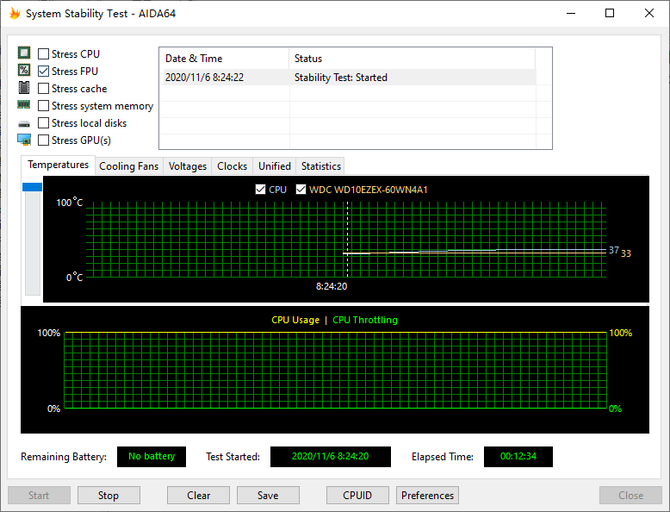 最后我们使用AID64单烤FPU,CPU的温度软件显示仅为37℃,温度表现非常好。整机运行时也没有任何噪音,特别安静,让用户可以专注的进行创作。得益于惠普严格的品控,每台小欧N01在出厂前都经历了2000小时风扇满负荷测试,所以用户无需担心运行产生较大噪音。