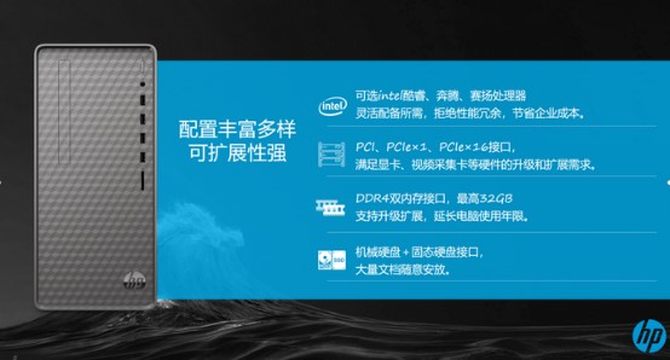 内存方面,惠普N01台式机高支持32GB DDR4-2933MHz内存,强大的内存可以提升与处理器交互能力,加快响应速度。硬盘则采用高速PCIe SSD和HDD双硬盘设计,其中固态硬盘可以提升系统运行速度,打开各种游戏或者软件快速不卡顿;HDD可以存放大量办公素材或者高清影片,满足办公和娱乐多重要求。
