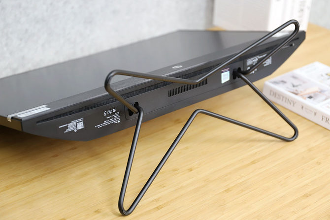 金属的支架非常有艺术感,提升了整机的时尚气质,当然,也可以调整机身的前后俯仰角度,以帮助用户找到最舒适的坐姿和视角。