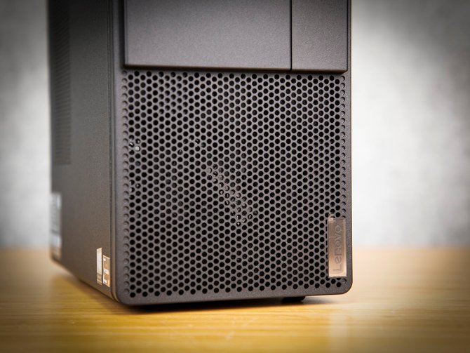 另外在整机的下部分还有大面积的散热孔位,同时还有联想的品牌LOGO。