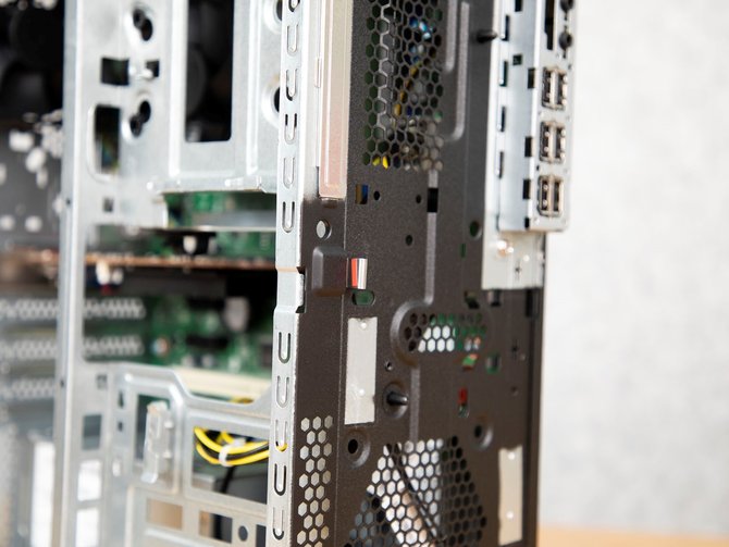 另外整机还有4个PCIe拓展位,用户还可以自行加装显卡、网卡等设备,对整机进行轻松设计,同时除了侧板需要使用螺丝刀进行开启之外,后部的PCIe挡板位置、前面板以及内部结构均能采用卡扣式的快拆设计,拆解非常简便,自己动手就能够升级,非常贴心简便。
