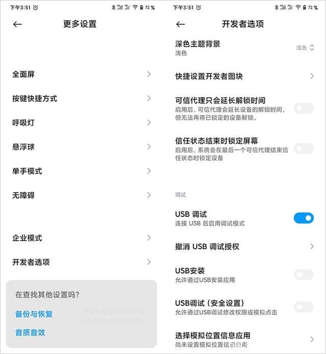 另外,如果电脑上无法控制安卓手机,还需要开启USB调试(安全)选项,用于模拟点击权限。