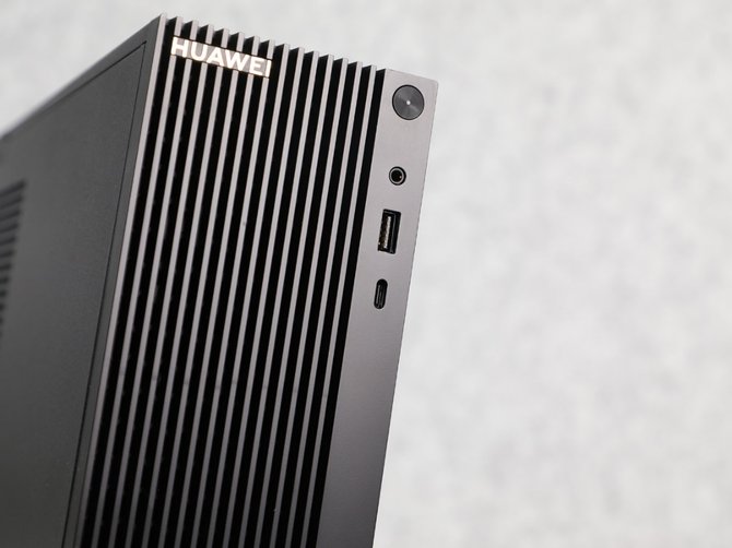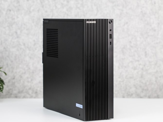 HUAWEI MateStation B515商用台式机采整机采用了非常简洁的黑色设计,整个台式机的身材非常小巧,三围分别为293mm(高)X93mm(宽)X315.5mm(深),体积仅8升,摆在桌面上,仅仅占据一小块地方,能够有效提升我们办公空间的利用效率。