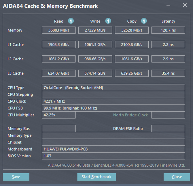 经过我们实际测试,内存的读取成绩为36883MB/S,写入为27229MB/S,拷贝为32528MB/S,对于日常办公来讲,16G的双通道内存,能够提供更好的性能支持。