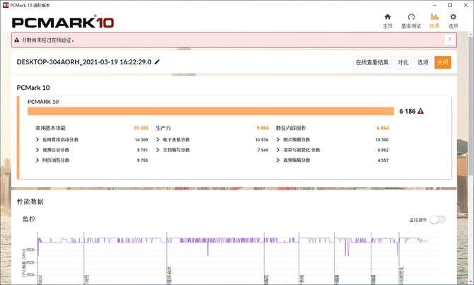 在PCMARK10这项测试中,这款整机的得分为6186,这样的成绩可以说是非常优秀的了,足够应对目前市面上所有的办公类软件,包含OFFICE、视频通话、后期作图等应用,做到绝对的流畅不卡顿。