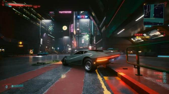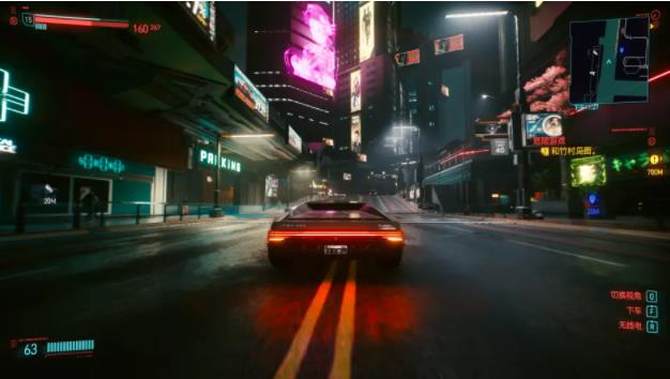 另外,这个游戏时离不开载具的,因为地图实在太大了,每次任务都需要驾驶。而2077年的车辆都是靠后轮转向的,一旦速度一起来,四轮载具稍不注意就会甩尾。在风驰电掣的体验驾驶乐趣同时,更体现了游戏的流畅性。在2K分辨率+光追+DLSS组合下,画面丝毫没有拖拽感,一点也没有卡顿现象。