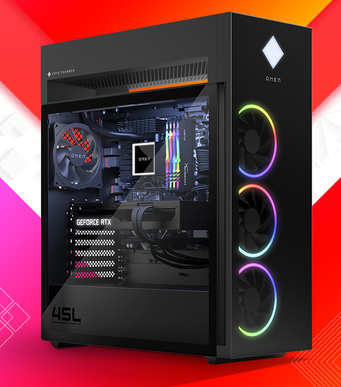 存储方面,OMEN暗影精灵8游戏台式机旗舰版搭配四条金士顿64GB高速DDR4内存,通过XMP超频可让频率高达3733MHz。另外,该款游戏主机标配两款硬盘,其中1TB SSD采用西部数据的游戏黑盘,速度相比普通NVMe固态硬盘还要快。另外还内置一块2TB的HDD机械硬盘用于更大内容的存储。