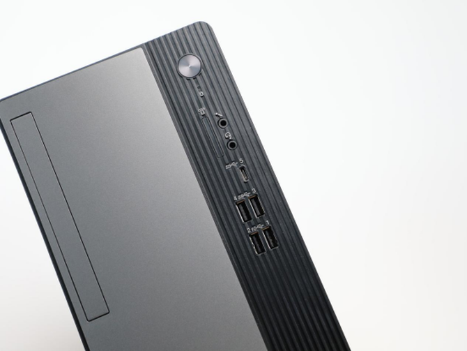 细节方面,联想扬天M460前面板为用户预留了非常丰富的接口,左边为预留的光驱位,用户可以后期加装,右侧为开机键,耳机麦克风接口,Type-C接口和4个高速USB接口,足够满足大部分用户的日常使用需求。