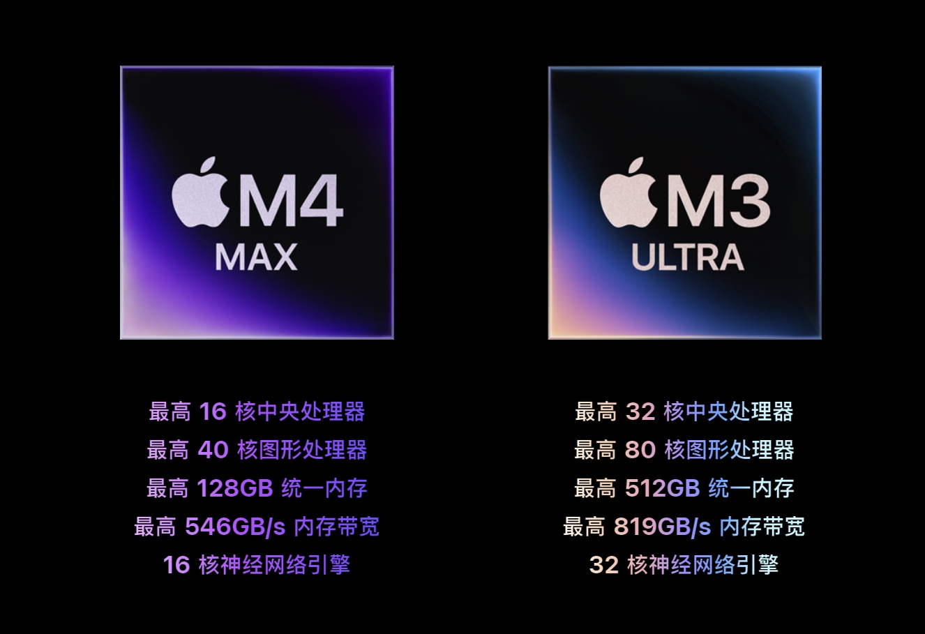 经过一年半多的时间,今天凌晨,苹果更新了Mac Studio,奇怪的是:它跨越了两代产品,基础款搭载M4 Max芯片,升级款则配备M3 Ultra芯片。