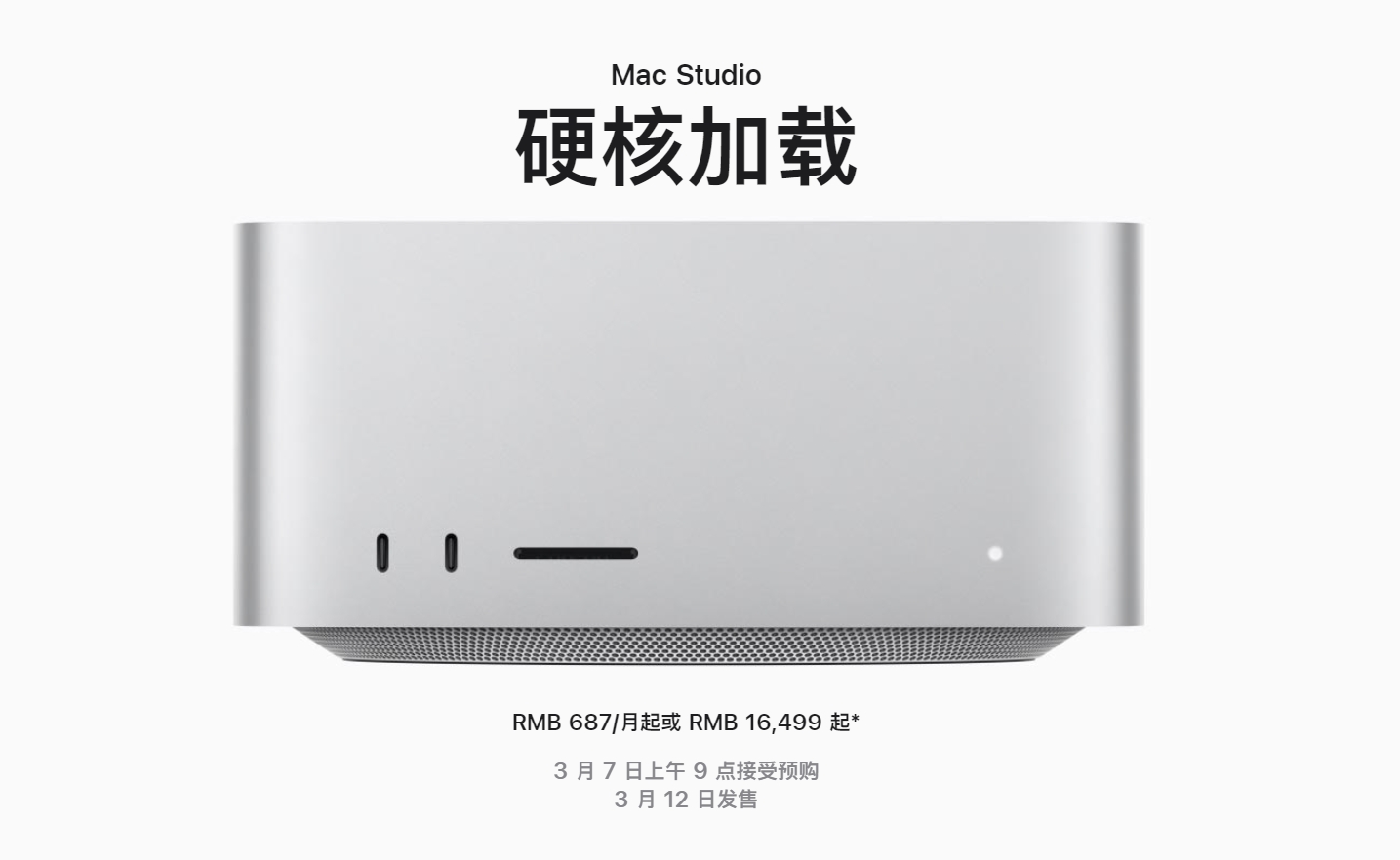 新款 Mac Studio 将于 3 月 7 日上午 9 点接受预购,并将于 3 月 12 日正式发售。