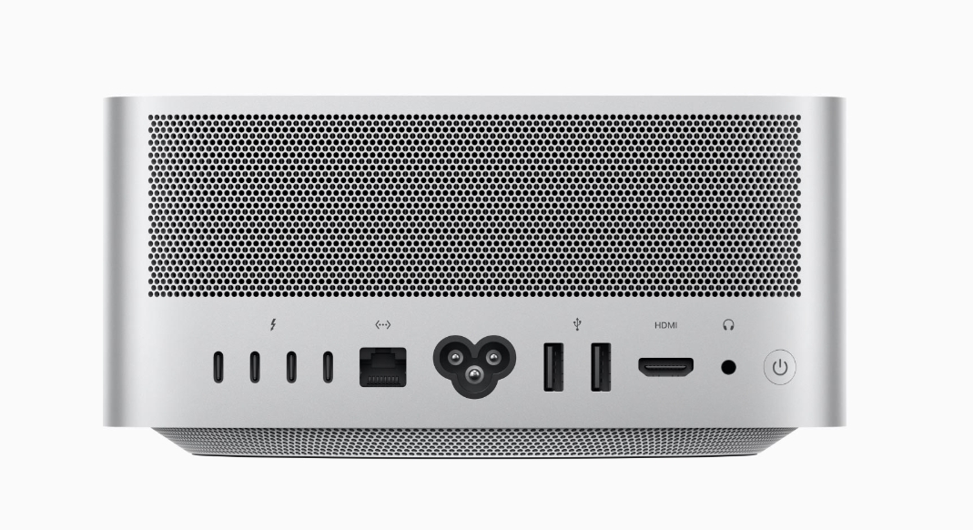 从外观上看,新款Mac Studio与之前一样,是一个矮胖的、略带方形的银色盒子,前面有两个USB-C端口和一个SD卡插槽。背面则有四个更多的USB-C端口、两个USB-A端口,以及各一个以太网、电源和音频端口,还有一个音频插孔和电源键。两种CPU配置都支持Thunderbolt 5连接,但与上一代Studio一样,只有M4 Max型号背面的四个USB-C端口是Thunderbolt 5,如果您希望所有六个端口都支持Thunderbolt 5,则需要选择M3 Ultra Mac Studio。