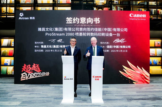 2025年5月15日,佳能(中国)有限公司与雅昌文化集团(以下简称“雅昌”)于第十一届北京国际印刷技术展览会(以下简称“CHINA PRINT 2025”)首日,举办“‘数’造未来 智印商机”佳能与雅昌签约仪式暨商业数码印刷创新应用高峰论坛。签约仪式上,雅昌宣布订购佳能ProStream 2000系列数码喷墨打印机,这是佳能引入中国市场的首台ProStream 2000系列数码喷墨打印机,标志着“印刷+艺术”跨界融合生产解决方案的全面升级,为艺术品商业印刷的数字化转型树立了新的典范。