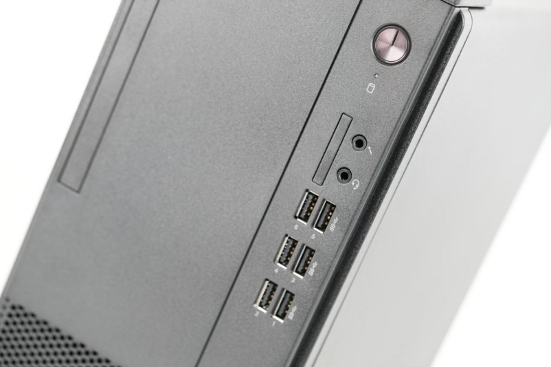 另外联想启天M550的正面还可以选择升级光驱、SD内存卡读卡器,并且正面的6个USB接口均采用了USB 3.2 Gen1设计,提供更高速的数据传输。