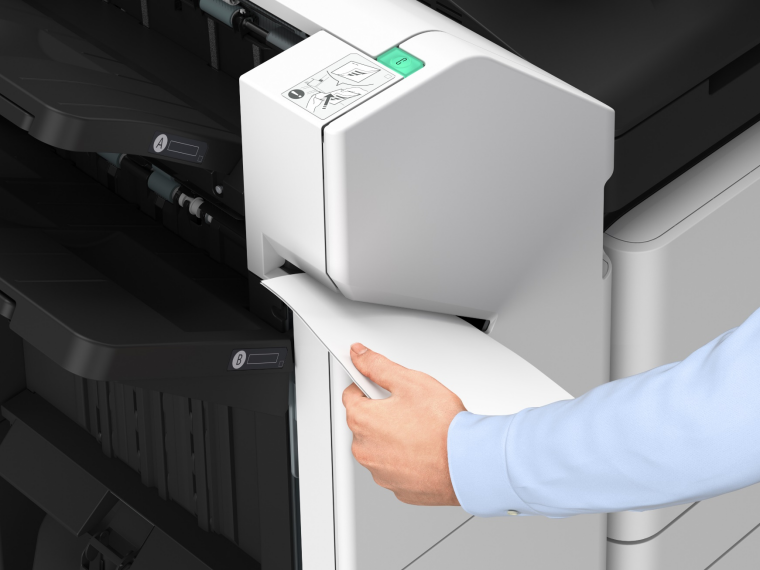 佳能imageFORCE赢系列数码复合机可选配分页装订处理器,实现各类装订任务