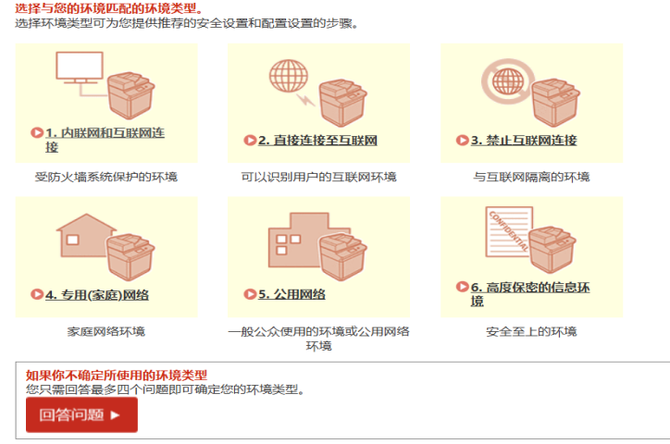佳能imageFORCE赢系列数码复合机可以根据用户选择的使用环境推荐安全设置