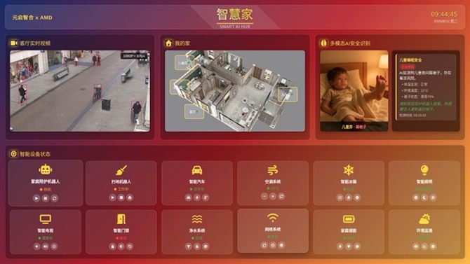 元启智合依托浙江大学机器人研究院科研成果,针对锐龙AI MAX+ 395处理器特性,打造面向家庭场景的“智慧家”解决方案,基于本地基础大模型和多模态模型,支持多并发协同处理多模态场景识别,实现从语音、图像到家具等多终端的全方位智能实时响应。