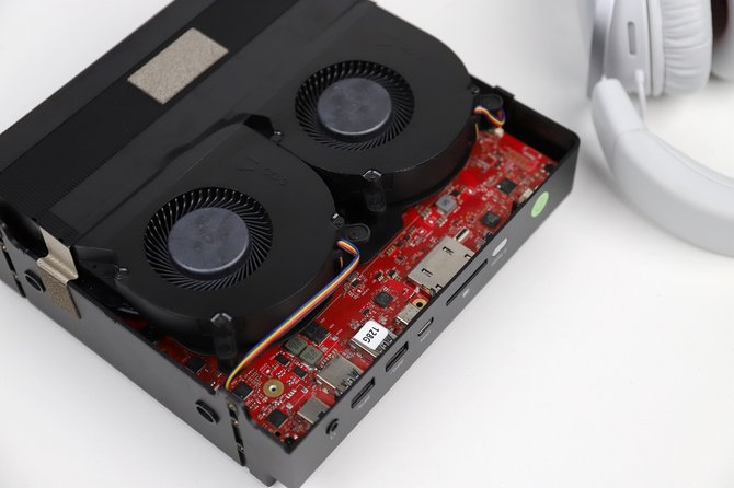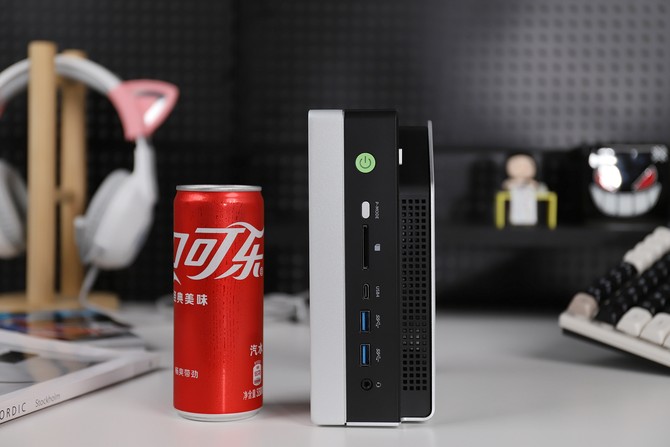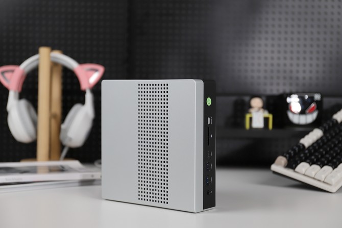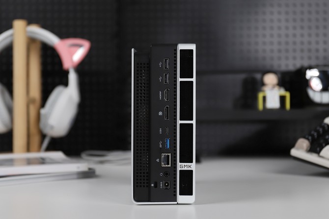 机身后置的端口提供了 2 个USB 2.0,1 个 HDMI 2.1,1 个 DP1.4,1 个Type-C USB4,1 个 USB3.2(Gen2),1 个 RJ4.5 有线端口,3.5mm 耳机/麦克风插孔及电源接口。此外也提供了一个安全锁孔,对于小型机而言,还是很有必要的。
