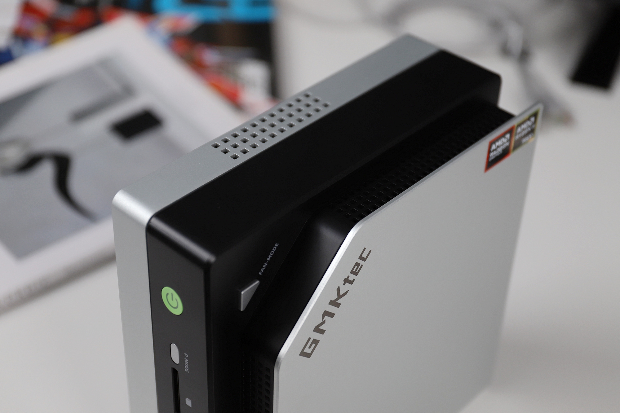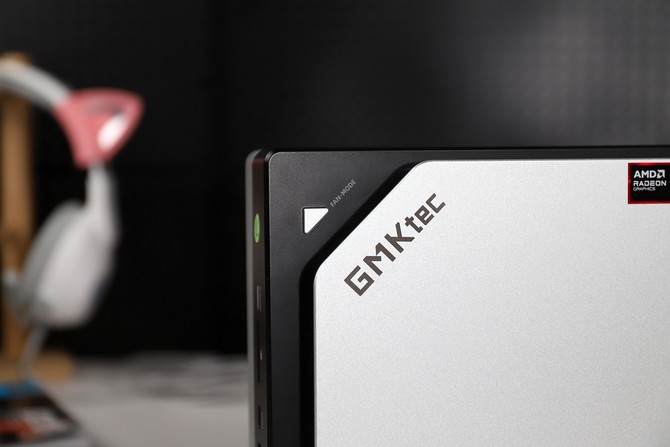 侧面采用多边形设计风格,左上角有极摩客的Logo,旁边则是切换风扇模式的三角形按钮,这样的设计不仅增添了科技感,也提高了实用性。