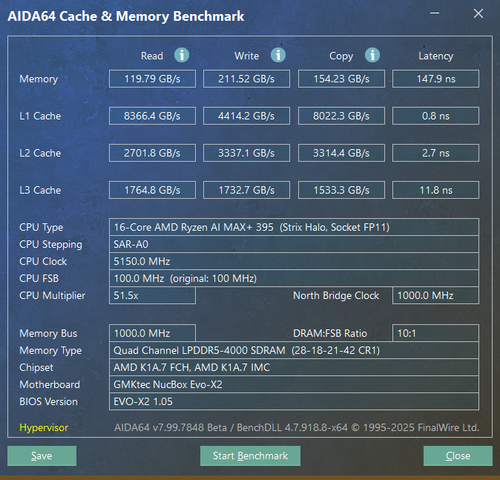 首先来看看锐龙AI Max+ 395处理器在极摩客EVO-X2 上的性能表现。