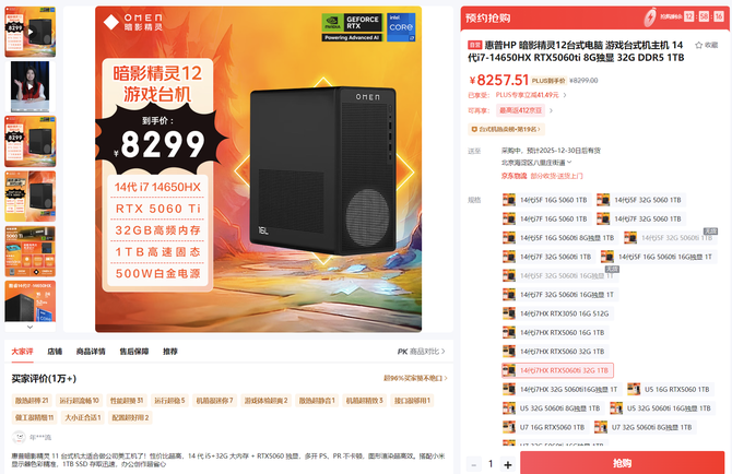 目前,惠普暗影精灵2026游戏台式机已在京东、天猫等主流电商平台正式开售,需要的玩家可以前往选购。