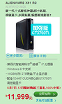 Alienware X51升级了强悍的的Intel 酷睿i7 4790处理器,配合NVIDIA GeForce GTX 760Ti显卡,能够轻松应对主流游戏,无论是外界电视还是显示器,都能够带来顺畅自如的游戏体验。目前采用Intel 酷睿i5 4440处理器的机型在戴尔官网最新价格为19999元,且现在“6月7日-12日限时购机三重礼,100%%中奖”,有意向购该机器的顾客可拨打客服专线4008845118/8008582013或登录www.dell.com.cn/go来了解更多关于这款台式机的信息。