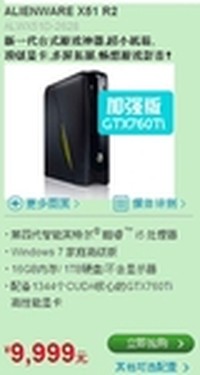 Alienware X51 R2在性能方面绝对可以满足各种骨灰级玩家的需求,优势强大,而且免去了自己装机DIY的烦恼。目前采用Intel 酷睿i5 4440处理器的机型在戴尔官网最新价格11999元,有意向购该机器的顾客可拨打客服专线4008845118/8008582013或登录www.dell.com.cn/go来了解更多关于这款台式机的信息。
