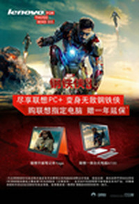 近日,联想PC+产品携手好莱坞科幻巨制《钢铁侠3》倾情献映:钢铁侠PC+装备,感受“源自内心的力量”,让你变身无敌钢铁侠,在绝望的谷底点燃希望。即日起,联想春季促销将带你踏入钢铁侠的世界!作为春促主打产品,全球首款能够360°翻转的平板笔记本IdeaPad Yoga,以其独创的0°至360°任意角度自由翻转,平板、笔记本二合一的创新模式,不论顺境还是逆境都让你成为生活中的钢铁侠,随时应对各种挑战。你成为生活中的钢铁侠,随