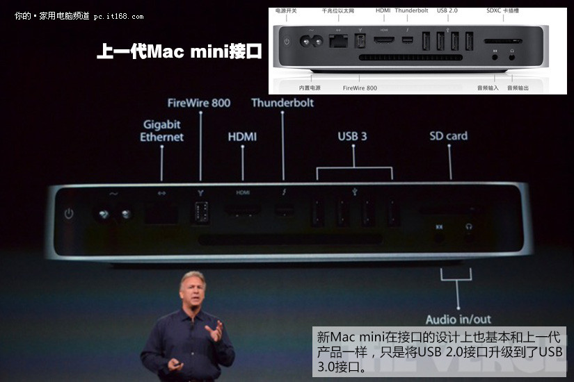新Mac mini在接口的设计上也基本和上一代产品一样,只是将USB 2.0接口升级到了USB 3.0接口。