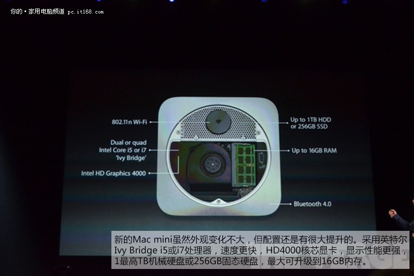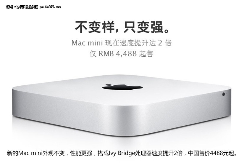 新的Mac mini外观不变,性能更强,搭载Ivy Bridge处理器速度提升2倍,中国售价4488元起。