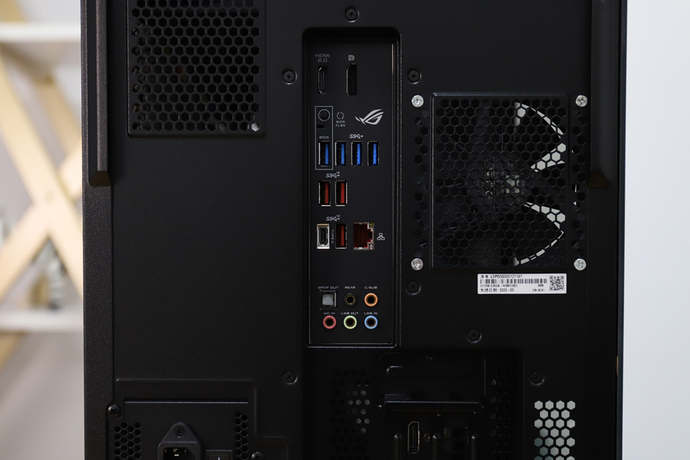 主板上的接口从上到下包括HDMI2.0、DP1.2,4xUSB3.1 Type-A Gen1,3xUSB3.1 Type-A Gen2,1xUSB3.1 Type-C Gen2,1个千兆网口,5x音频输入/输出,SPDIF OUT。RTX 2080显卡上提供了2个DP接口,2个HDMI接口和1个Type-C接口。此外,该机还提供了802.11AC无线网络连接和蓝牙5.0连接,非常方便。强大而丰富的接口,足够你连接更多外设,打造自己的性能中心。