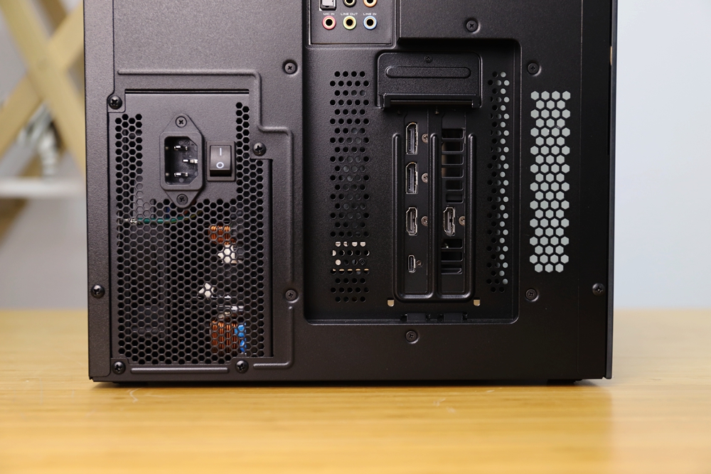 顶部提供了快捷接口,包括2xUSB3.1 Gen1 Type-A,2xUSB3.1 Type-C Gen1,音频输入和音频输出端口,能够满足日常外接设备的需求。